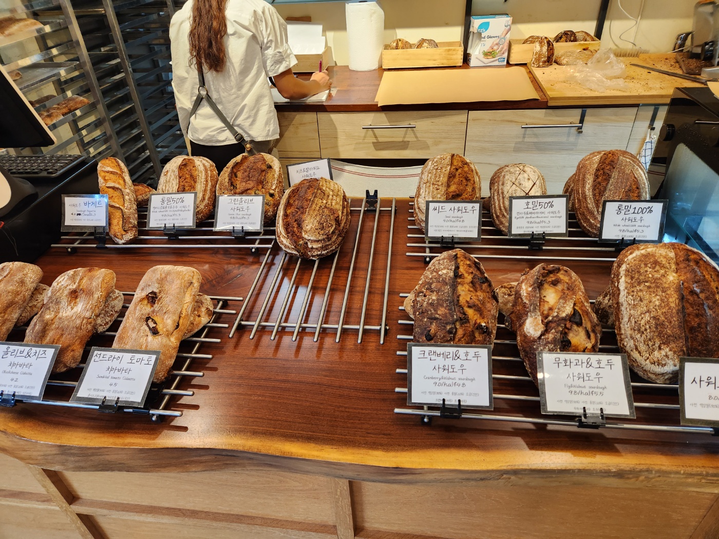 "우리밀 샤워도우" 로 만든 빵으로 산미가 있는 발효 빵이라는 뜻이라고 합니다. 저는 그냥 건강에 좋은 빵으로 생각하고 있습니다. 역시 빵집 맛집입니다.