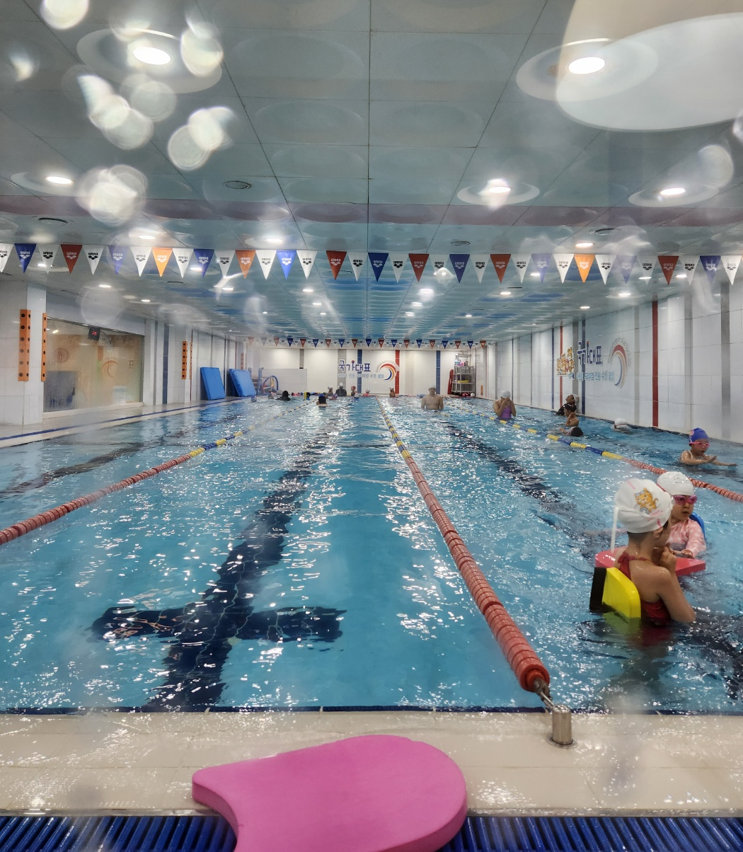 실내 풀장은 상당히 깔금하게 되어 있습니다. 투명 유리창으로 되어 있어서 아이들이 수업받는 모습을 잘 볼 수 있습니다. 수영장 레인은 넓직하게 되어 있어서 아이들 그룹이 같이 수영하기에는 충분해 보입니다. 그리고 수심은 모두 0.8M 로 아이들 키에 맞게 수심이 구성되어 있어서 안전하다고 생각이 듭니다.