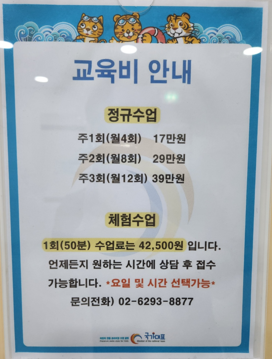 국가대표 어린이 수영장 교육비 안내