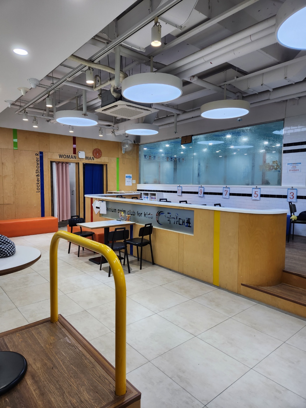 처음에 가보고 놀란 부분은 아이들 수업후 대기 장소입니다. 상당히 쾌적하게 되어 있어서 픽업하시는 부모님들은 대기하실때에는 불편함 없이 편하게 대리를 하실수 있을 것 같습니다. 수영장에서 아이들 픽업후 차량운행까지 해주고 있지만 저희는 직업 픽업을 하러 가고 있습니다. 그리고 여기 수영장의 장점은 샤워케어 입니다. 수영을 하고 난 후 강사님들이 샤워를 시켜주고 머리까지 말려주며 케어를 해주고 있어서 귀가후 바로 집에서 재울수 있으므로 부모님들이 저녁시간대를 가장 선호하는 점 참고하시면 되시겠습니다.