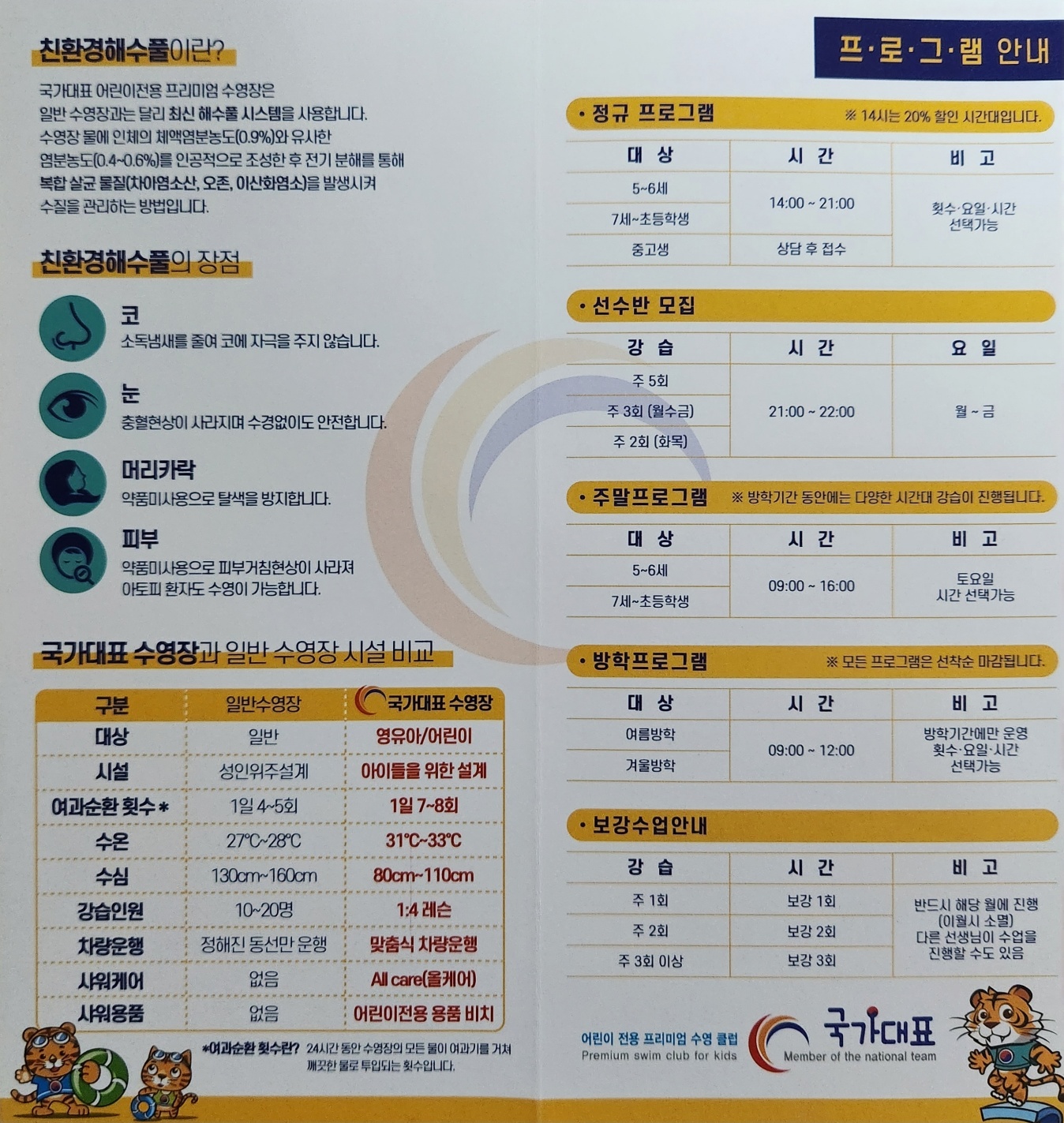 국가대표 어린이 수영장 프로그램 안내