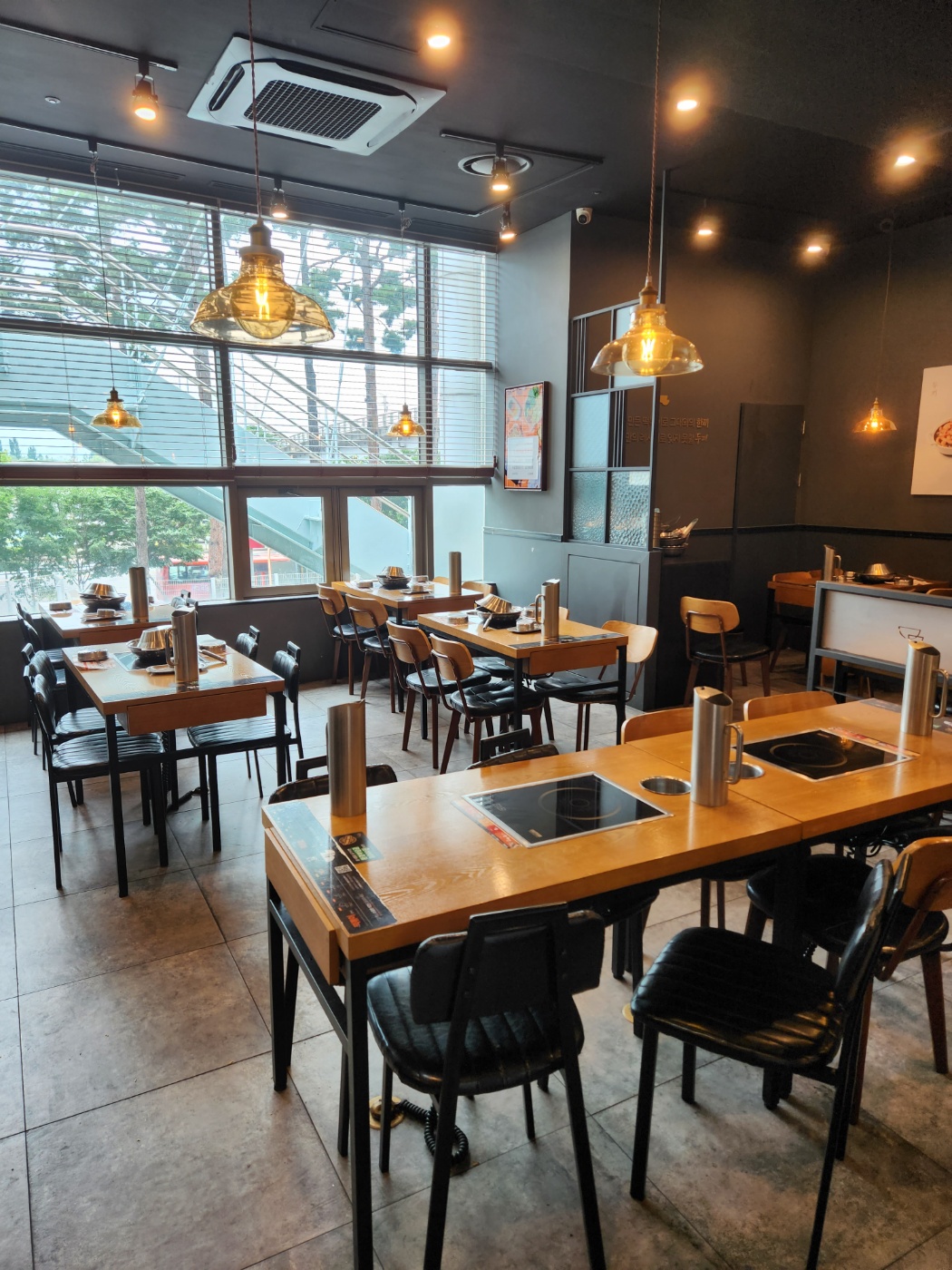 두끼에 들어가게 되면 잘 정리되어 있는 테이블입니다. 그리고 저희는 두끼를 월요일 점심에 방문하여 아무도 없을 때 저희만 먹고 있었습니다. 주말을 피해서 평일에 가니까 사람도 없고 너무 좋습니다. 여유롭네요!!