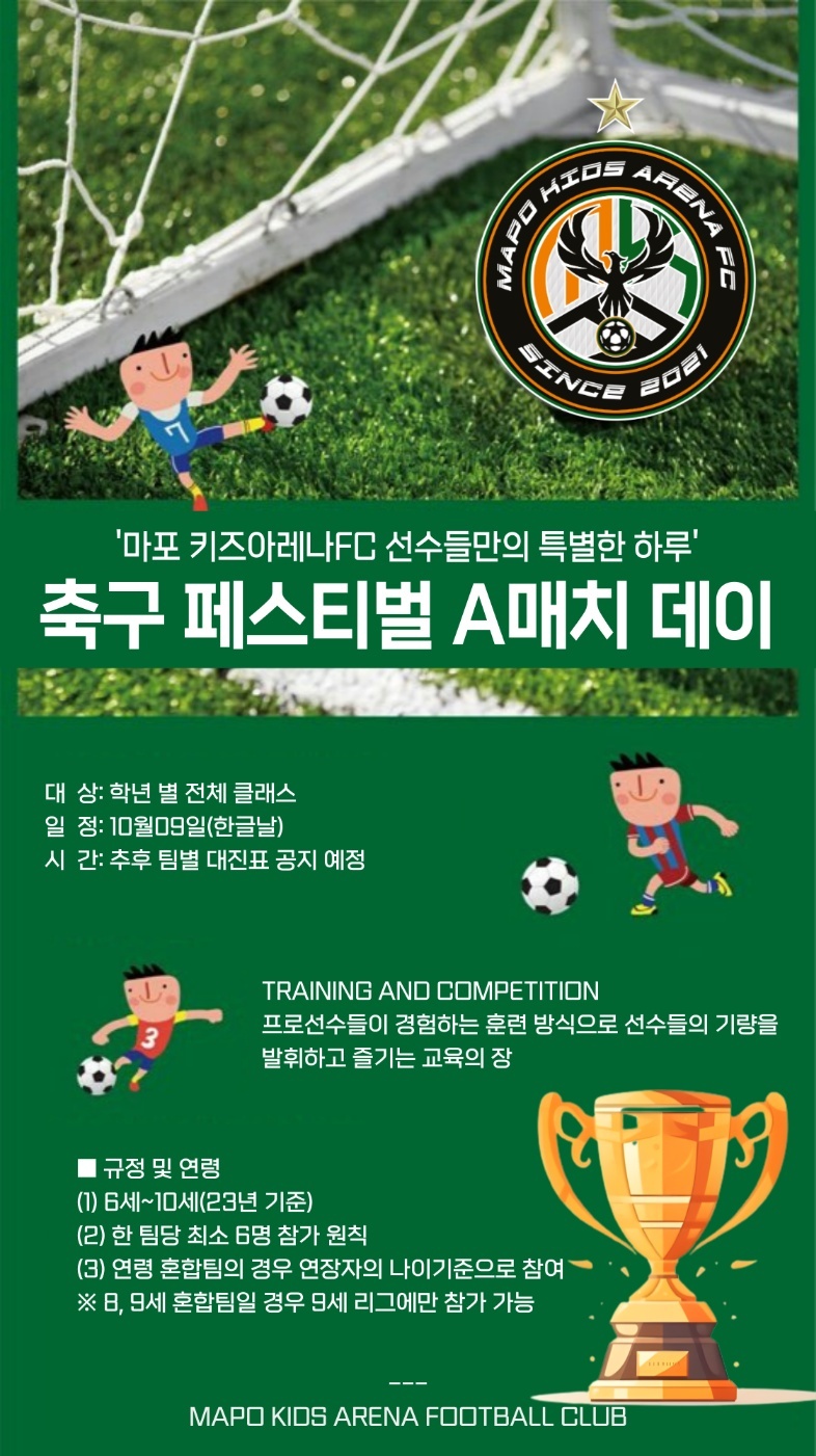 1년 넘게 다녀본 후기는 아주 만족입니다. 사실 집돌이인 아들이 축구의 재미를 느끼고 친구들과 축구를 즐기며 건강하게 놀기를 기대하며 다니게 되었는데 훌륭한 축구 감독님들의 지도 아래 축구의 실력도 올라가게 되고 축구의 재미를 느끼게 된 것 같습니다. 사실 남자들은 인생에 축구란 꽤 많은 비중을 차지하기도 해서 어릴 때부터 축구의 경험은 중요한 것 같습니다. 마포키즈아레나 FC 축구교실 적극 추천드립니다.