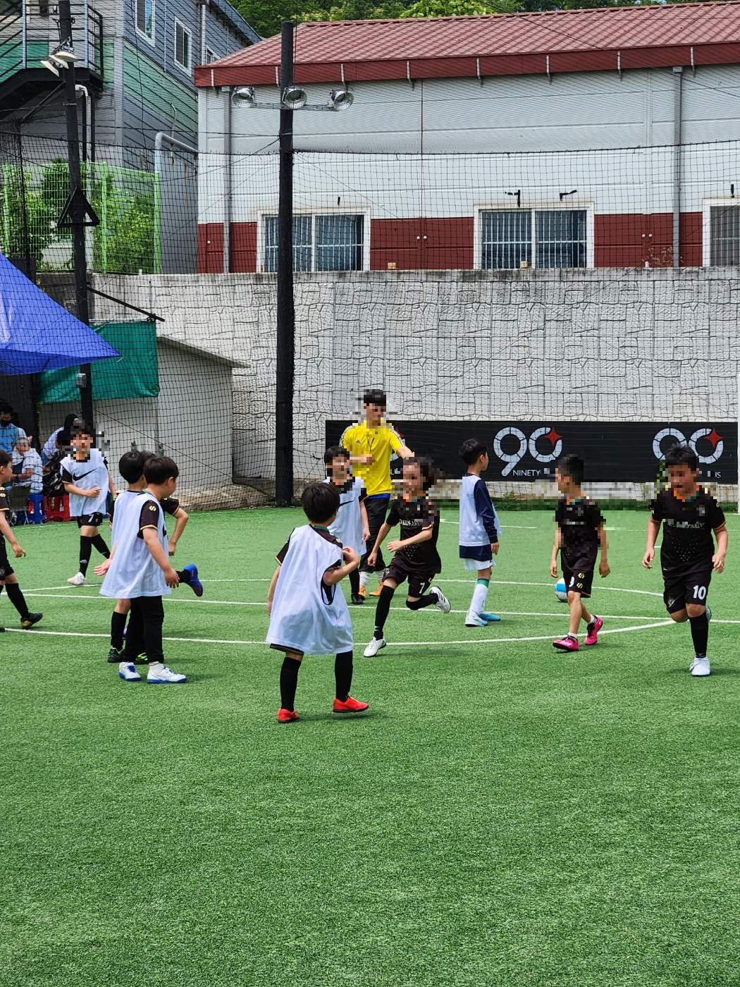 아래 사진들은 축구 시합을 하는 모습입니다. 사실 시합 전 30분 정도는 부모님들이 핸드폰만 보다가 실제로 축구시합이 진행되면 시합을 구경하며 응원을 하게 되는 것 같습니다.