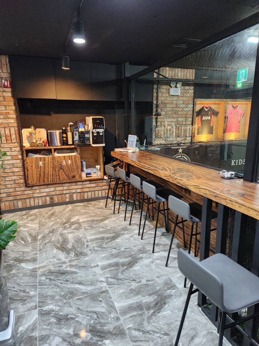실내시설은 잘되어 있는 편입니다. 자녀들이 축구를 하는 동안 부모님들은 편히 쉬면서 구경을 할 수 있도록 되어 있습니다. 커피 머신도 있어서 커피를 즐기며 구경이 가능합니다. 실내 구장도 인조잔디로 현재까지는 인조잔디의 상태도 좋은 편으로 느껴집니다.