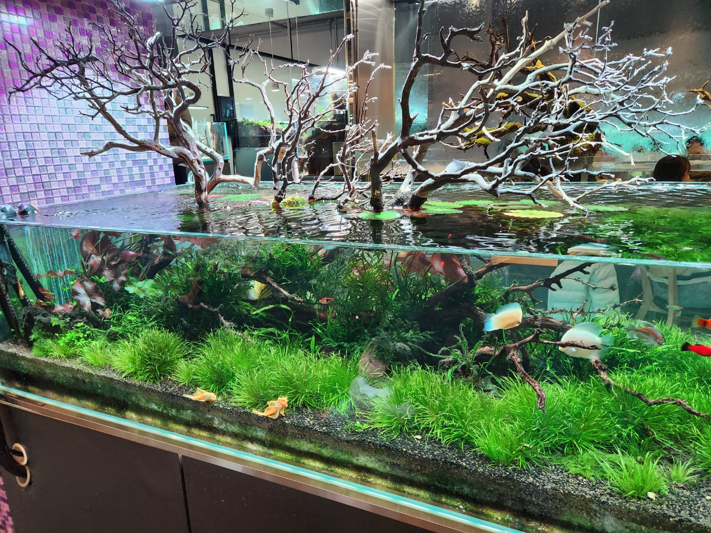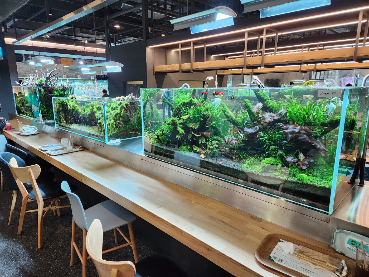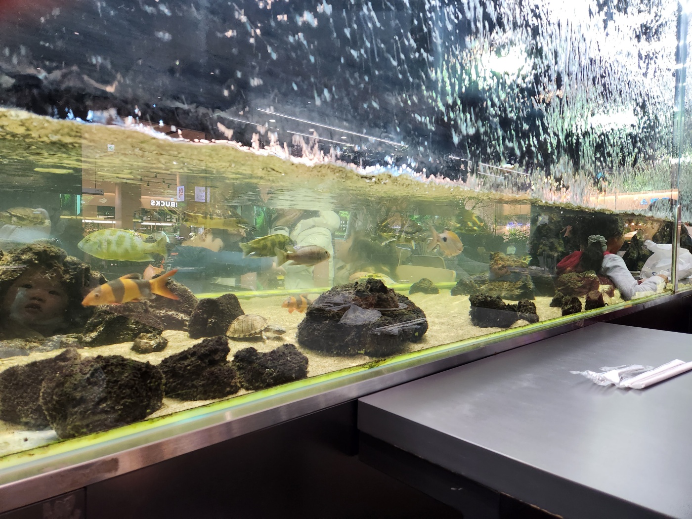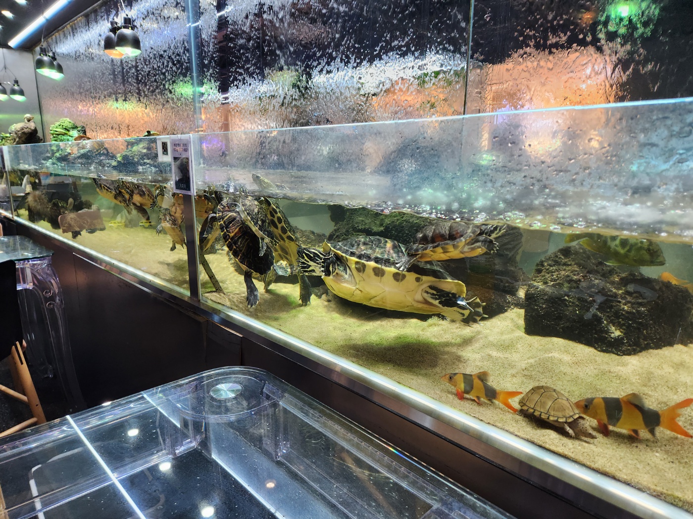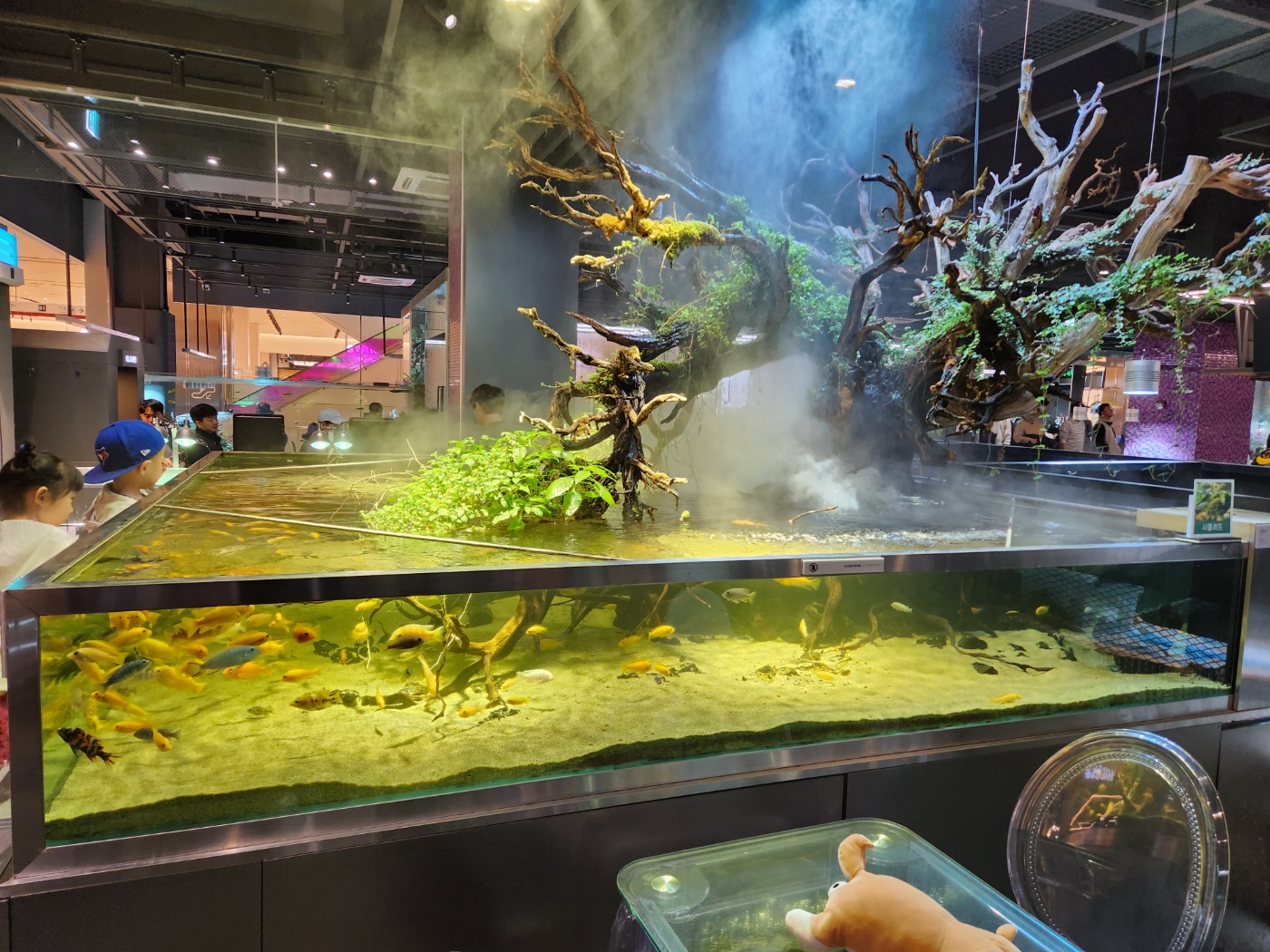 실내는 넓은 편이여서 주말에 갔음에도 여유로운 편이였습니다. 물멍을 할 수 있는 자리도 많이 있으며 가족단위의 넓은 테이블도 많이 있었습니다. 여유롭게 물멍을 한다던지 아이들이 물고기와 파충류를 구경 및 체험을 할수 있습니다.