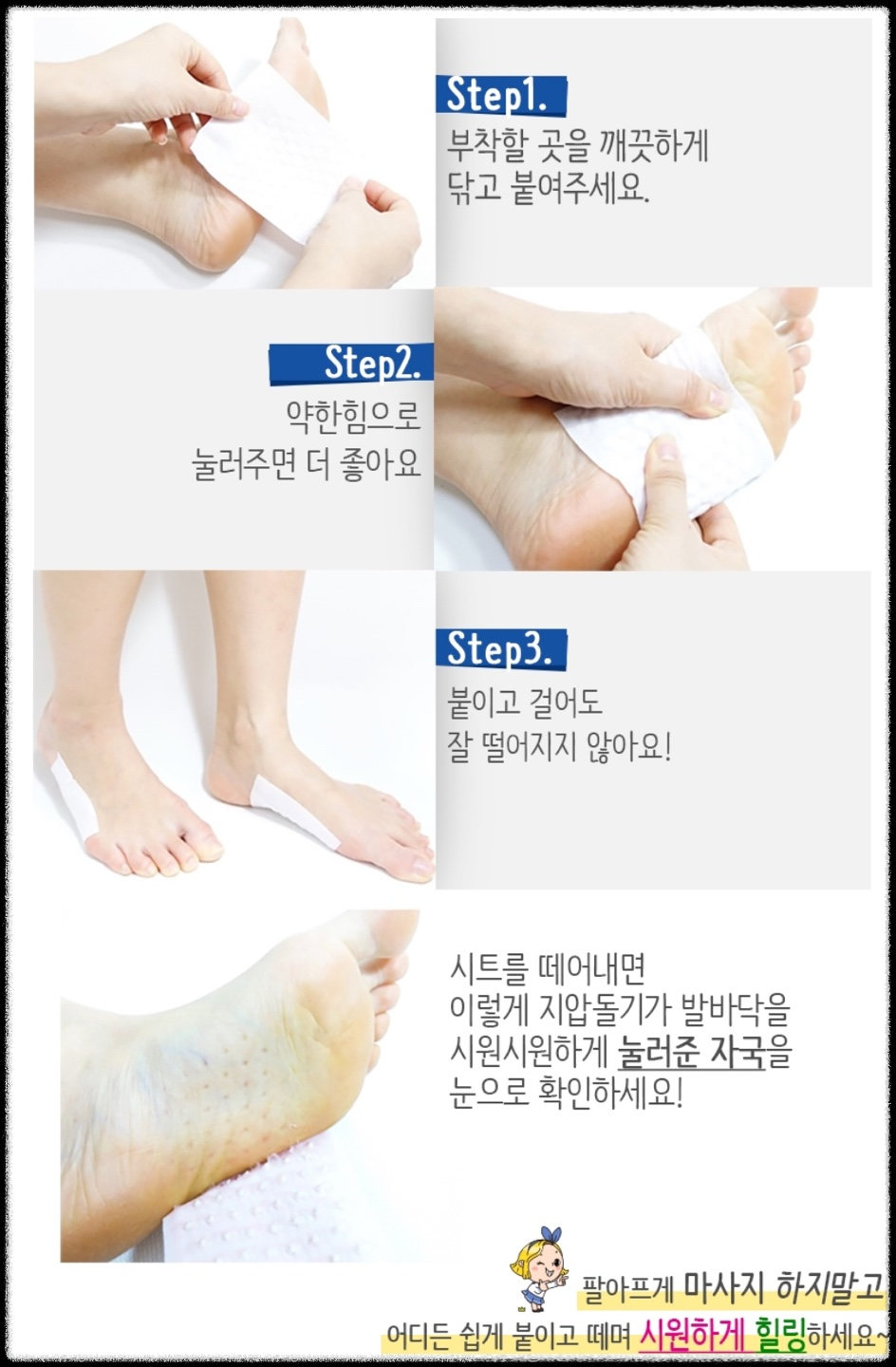 이 제품은 지압용 돌기가 있어서 발바닥에 붙이기 제격입니다!