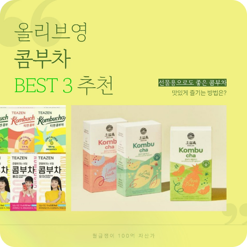 다들 제로슈거, 제로칼로리에 열광하고 있는 추세인데요, 오늘은 특히나 맛도 있고 건강도 생각하여 당 0%는 물론 각종 몸에 좋은 성분까지 포함되어 건강을 생각한 음료, 콤부차를 추천해드릴게요! 올리브영에서 판매 중이므로 접근성도 물론 훌륭하고, 심지어 맛도 너무나 좋은 직접 먹어보고 추천드리는 제품 3가지를 들고 왔으니 좋은 참고가 되시기 바랍니다.