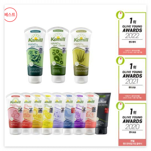 올리브영 어워즈 정통 부문 4년 연속 수상한 제품입니다. 180년 전통의 독일 제조사 Bumus GmbH에서 만든 독일 No.1 핸드크림으로 승무원 애장템인 승무원 핸드크림이라고 부르기도 합니다. 뛰어난 보습력이 장점이고 12종의 다양한 제품 구성으로 취향에 맞게 선택 할 수 있는 것이 특징입니다. 또한 가성비가 갑이고 용량도 크지 않아서 데일리 용으로 휴대하기 편리하게 되어 있어서 추천드립니다. 유명한 데에는 다 이유가 있을 것 같아 저는 이 제품을 구매해 볼까 생각하고 있습니다.