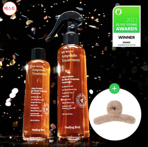 23년 올리브영 어워즈에서 수상을 하였고, 누적 판매량 850,000개를 돌파한 제품입니다. 씻어낼 필요 없는 노워시 트리트먼트로써 뿌리는 타입으로 간편함이 있으며, 7가지 식물성 오일과 실크 단백질 성분이 함유되어 모발 영양 공급과 윤기 코딩으로 손상모를 케어합니다. 염색모 탈색모 이거나 부스스한 곱슬모 이신분, 잦은 염색과 탈색으로 머릿결이 손상된 분들께 적극 추천드립니다.