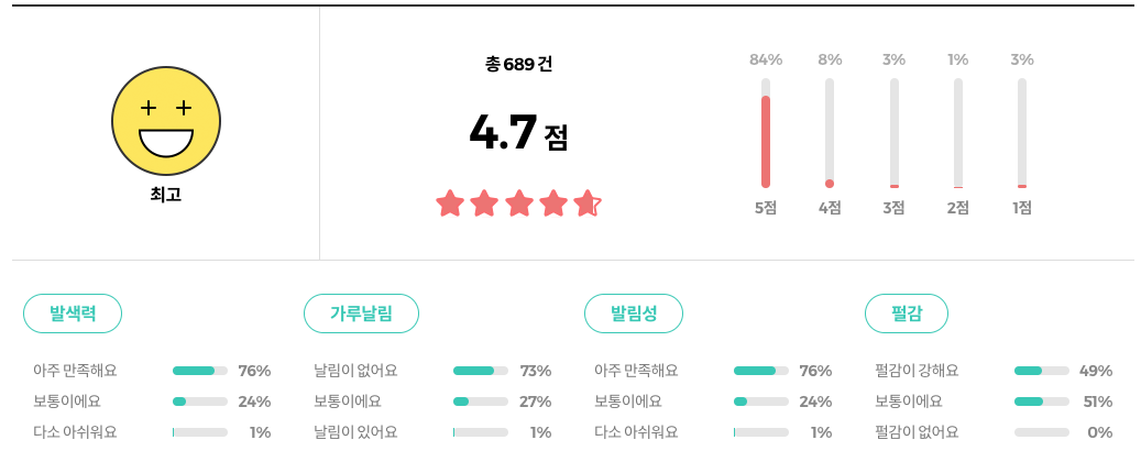 올리브영 사이트에 실제 사용한 후기가 가득하므로 최근 업데이트된 리뷰를 확인하시기를 바랍니다.