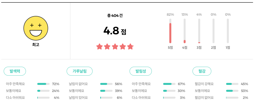 올리브영 사이트에 실제 사용한 후기가 가득하므로 최근 업데이트된 리뷰를 확인하시기를 바랍니다.