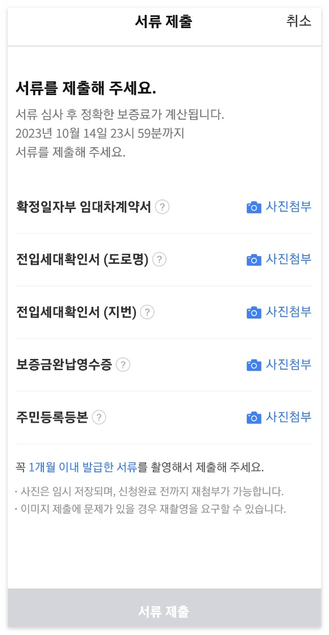 아직 서류 접수를 하지 않으면 아래처럼 서류 제출기한이 나오게 됩니다.