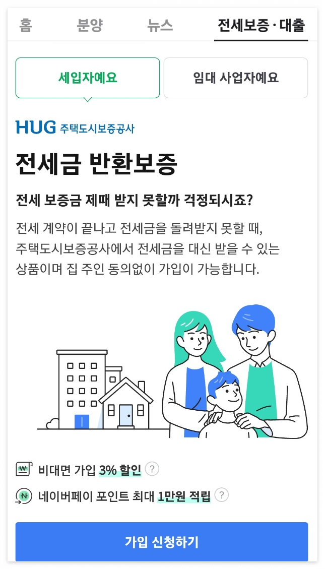 네이버에서 HUG(허그) 전세보증보험 가입 방법