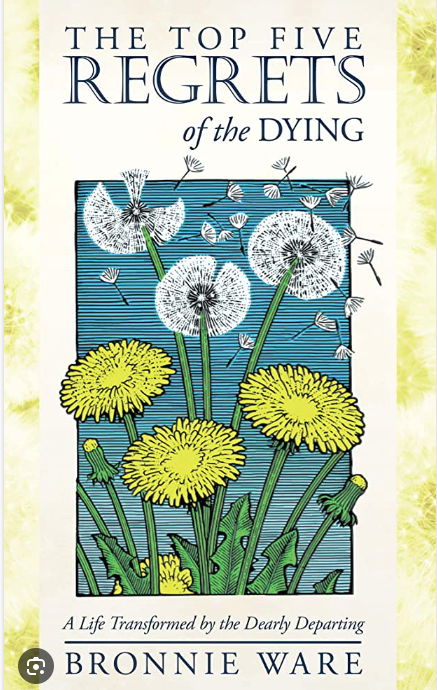 호주의 브로니 웨어 작가가 한 요양원에서 간병인으로 일하던 시절에 말기 환자를 돌보며 생을 마감하는 사람과 대화하는 과정에서 그들이 생의 마지막 순간에 말하는 후회가 비슷하다는 것을 알게 되었다. 그것을 하나씩 블로그에 올렸는데 예상치 않게 엄청난 조회수를 기록하였고, 그 내용을 책으로 펴내게 되어 베스트 셀러가 된 책이 'The Top Five Regrets of the Dying' 이다.