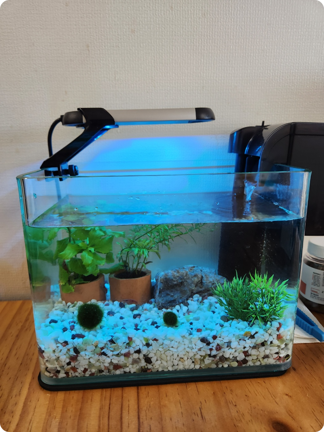 물갈이제와 에코박터맥스 제품을 넣어줬는데, 물갈이 할때 어항에 새우들이 죽지 말라고 넣어주는 용도입니다. 사실 예전에 물고기를 키웠는데 물갈이 할 때마다 물고기가 죽어서 이번에 키우는 새우는 죽이지 않기 위해 넣어주면 좋다고 해서 넣어주고 있습니다.