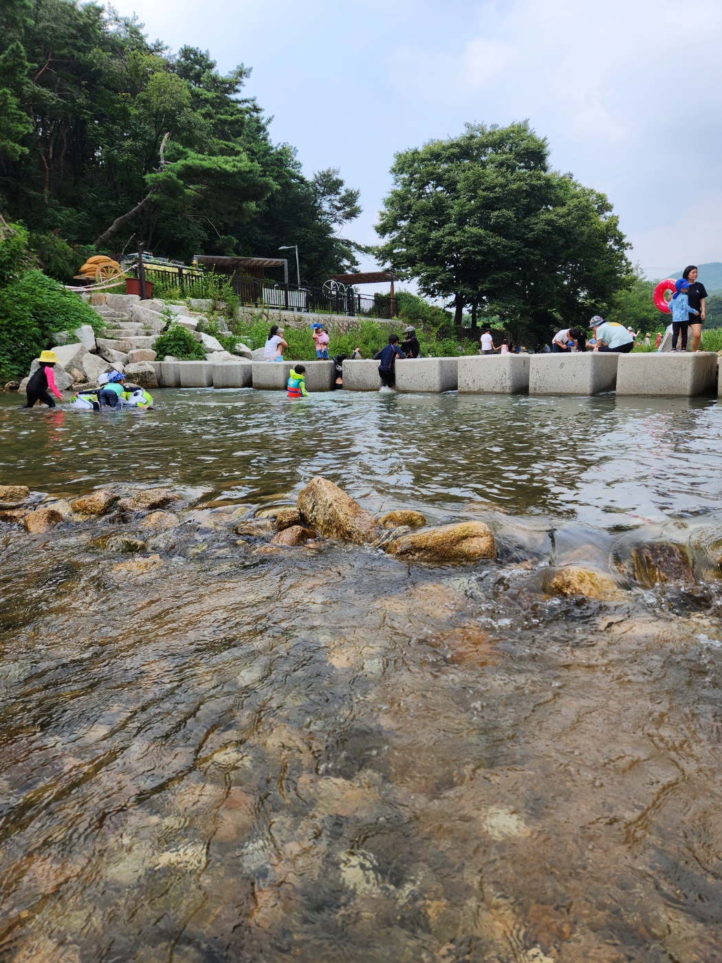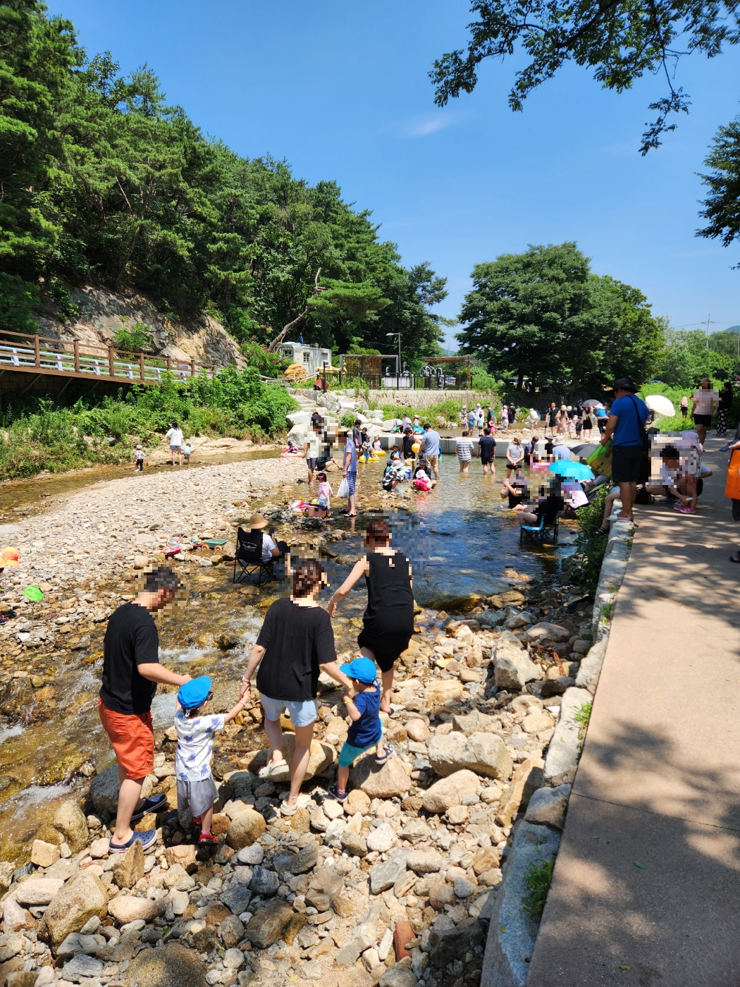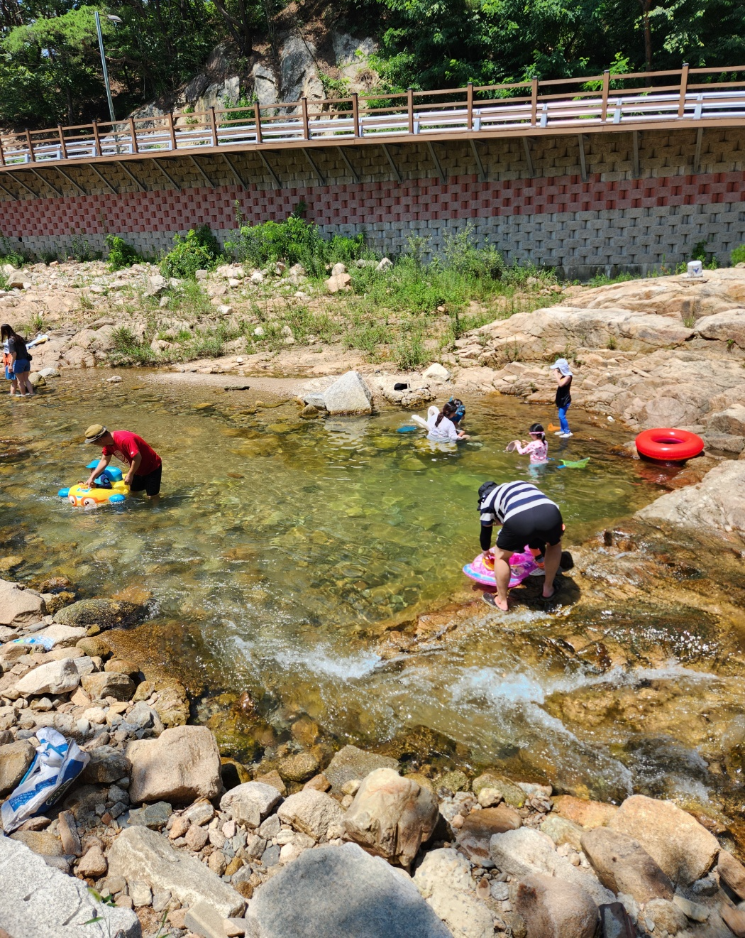 바로 옆에 있는 북한산의 계곡입니다. 엄마 아빠는 커피를 좀 마시며 여유를 즐기다 물놀이를 하고 싶었는데, 아이들이 기다리지 못하고 바로 계곡으로 물놀이를 하러 갔습니다. 물은 정말 깨끗하고 물고기도 많이 있습니다. 참고로 물놀이 용품 중에서도 스노클링 장비를 챙겨 가시면 물고기를 많이 볼 수 있으니 참고하시기를 바랍니다. 서울 근교에 물이 이렇게 깨끗한 곳이 있다는 것에 놀라실 수 있습니다.