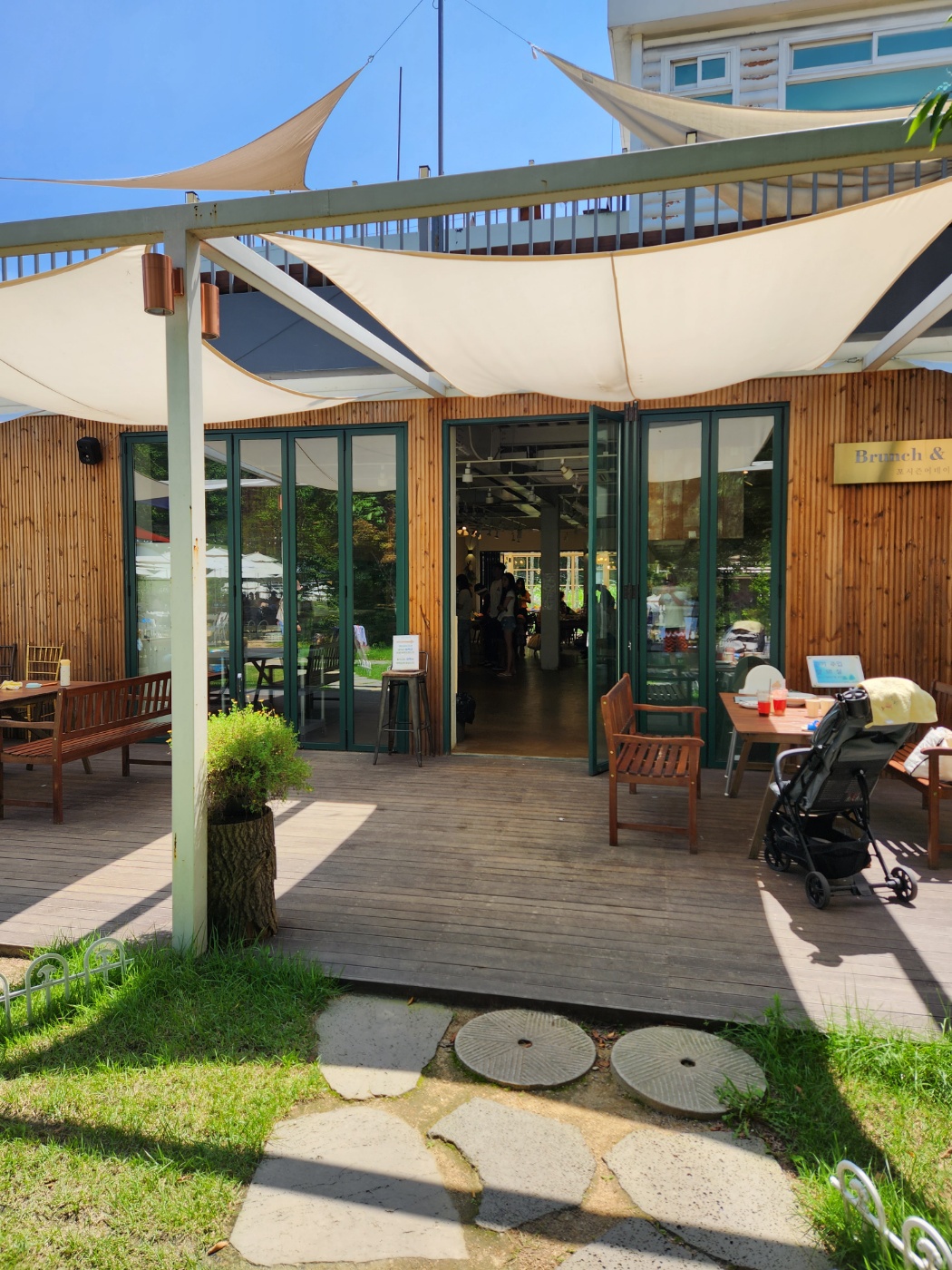 포시즌어데이의 건물입니다. 넓은 주차장과 넓은 공원을 구성하고 있으며 포시즌어데이의 건물은 위와 같이 빨간 벽돌로 되어 있습니다. 이 건물에 가서 커피와 브런치를 주문하시면 되는데 여기에서 팁은 테이블 자리가 굉장히 많은데 좋은 자리를 맡으신 후에 커피와 음식을 주문하시면 좋습니다.