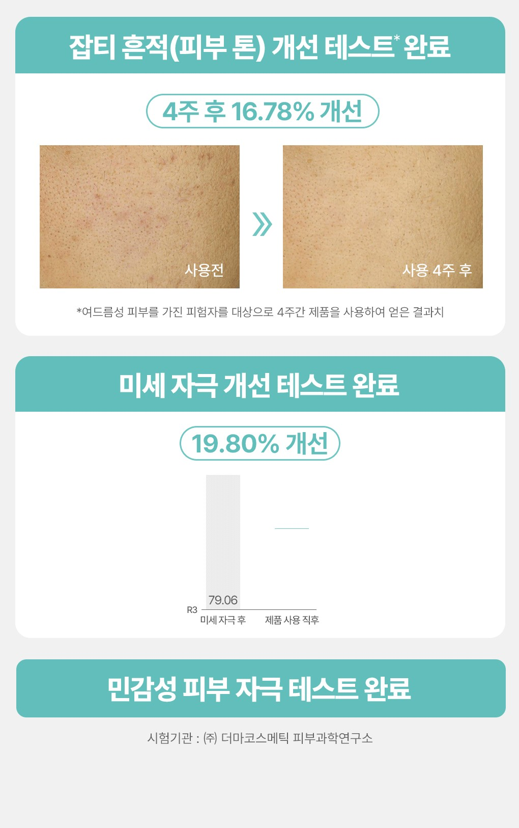여기에 민감성패널테스트를 완료했으며 영국과 한국에서 비건 인증을 받아 예민한 피부를 가진 사람들도 안심하고 사용가능하다는 사실~!