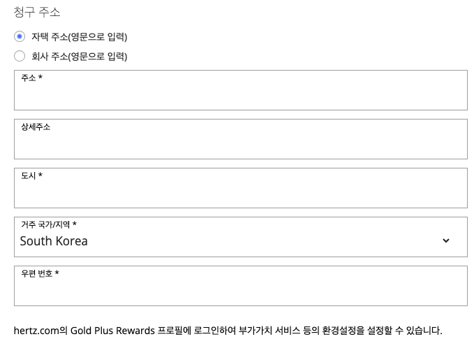 약관 동의 후 가입버튼을 누르면 가입이 완료됩니다. 완료되면 허츠의 골드회원이 되신것입니다.
