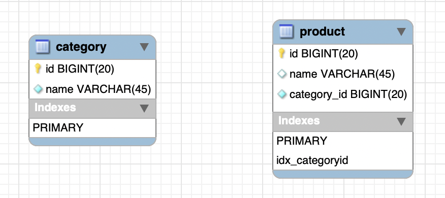 Product 테이블에는 category_id 컬럼이 인덱스로 잡혀 있다. (FK 아님)