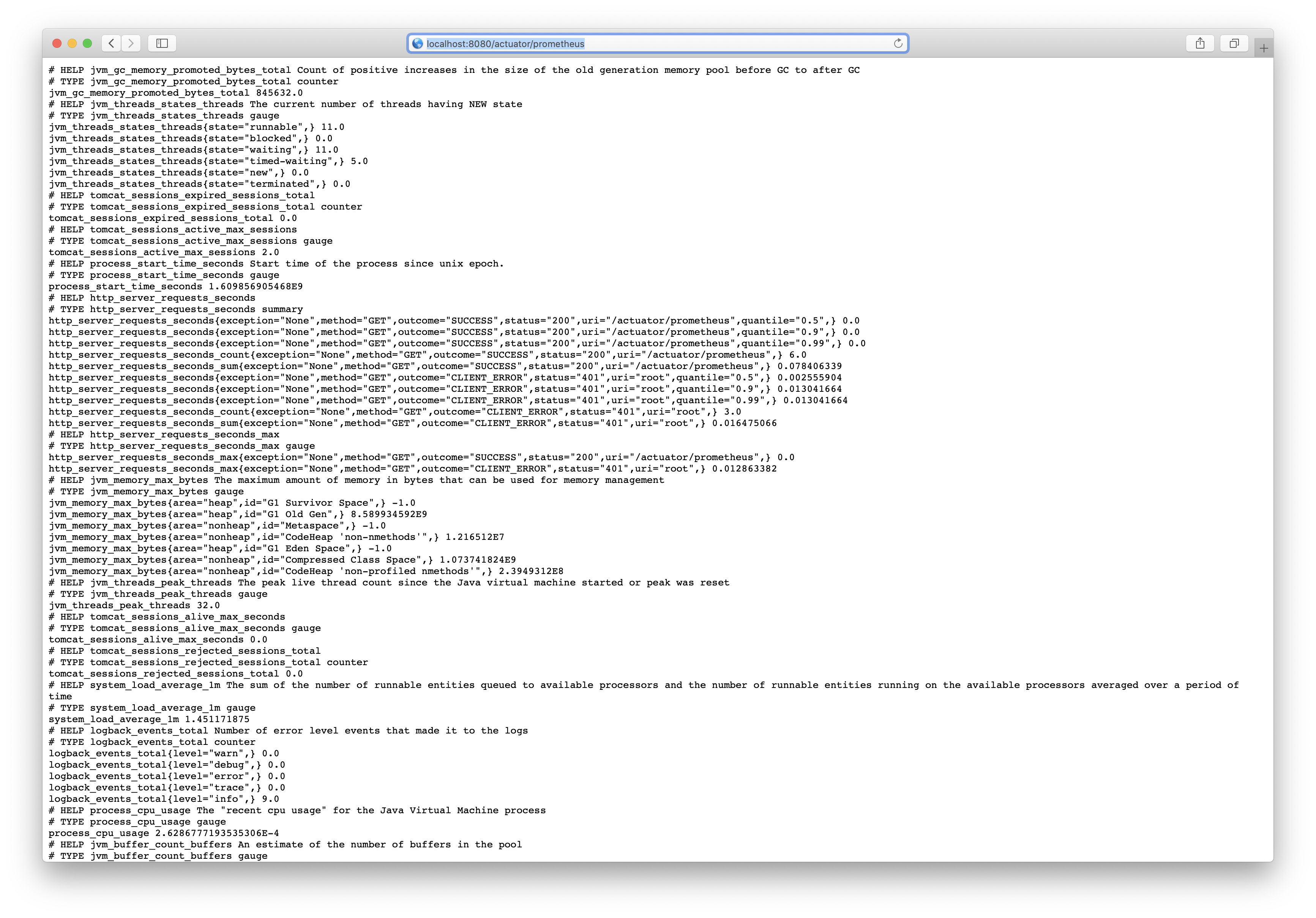 http://localhost:8080/actuator/prometheus URL 로 접속해보자.